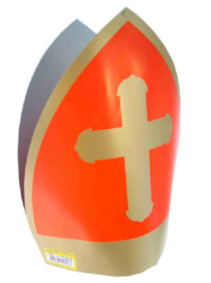 SCH 12053 Naar het Sinterklaasfeest met een kartonnen mijter op Groep: Feestartikelen/Sinterklaas